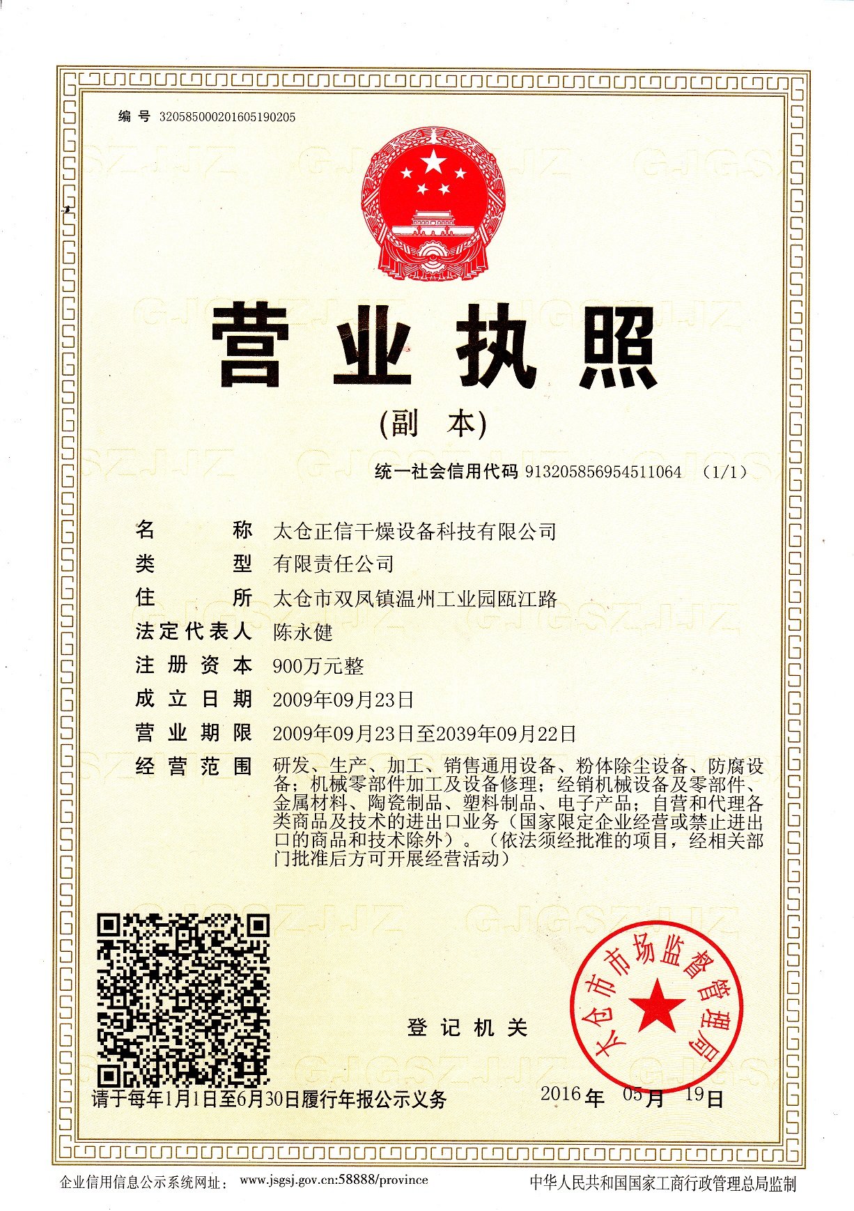太仓正信干燥设备科技有限公司信用代码